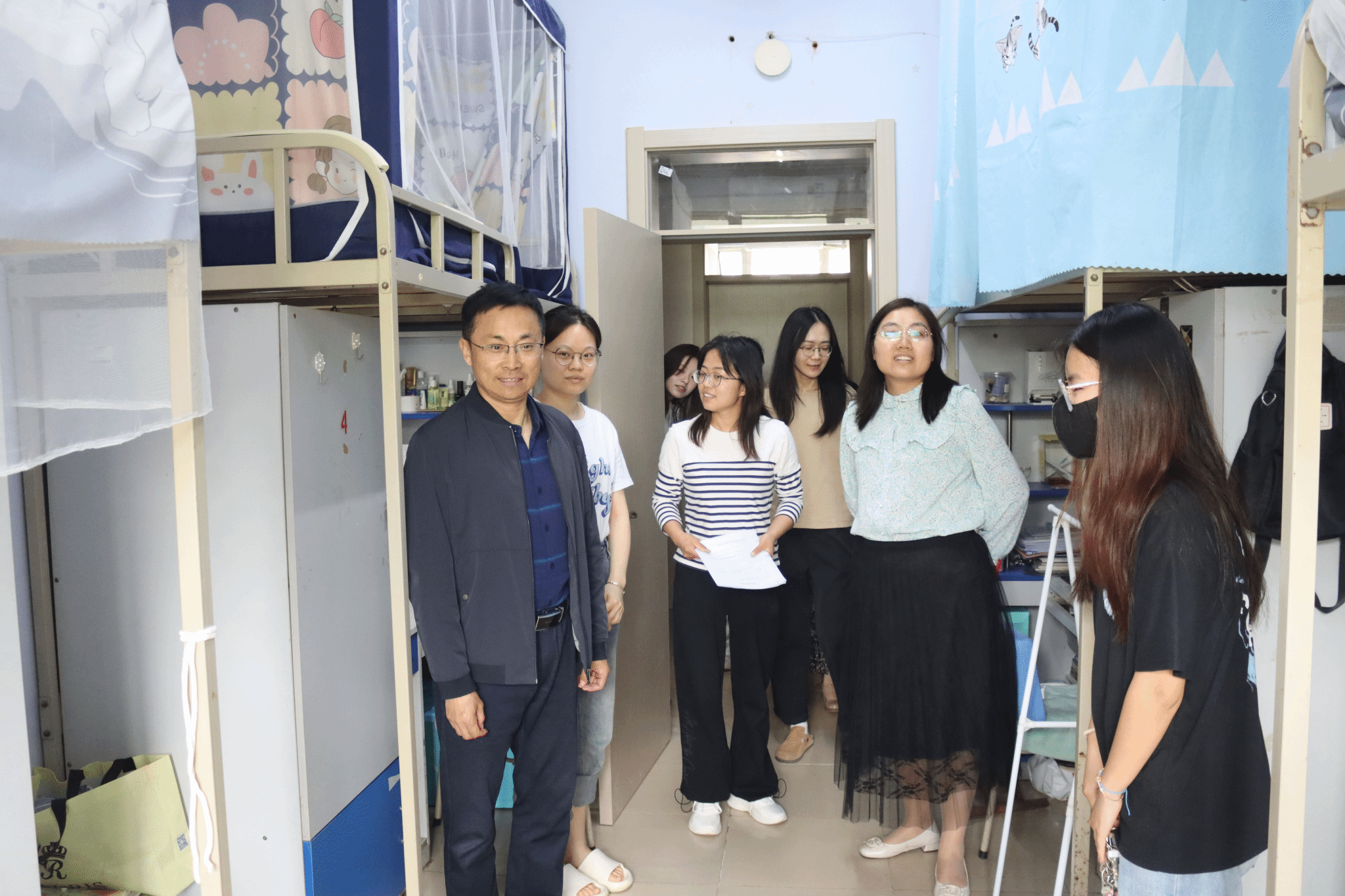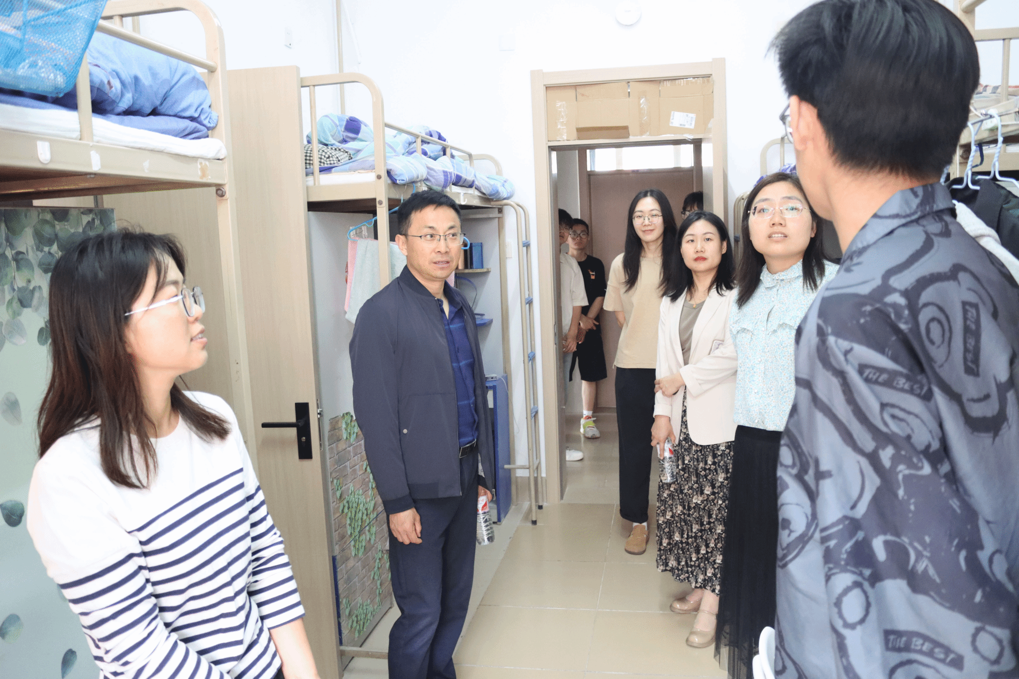 28日下午,公司党委书记杜江山及全体辅导员老师走访公司各年级宿舍,围绕宿舍电器安全及卫生状况进行检查,着重排查宿舍内是否存在劣质电器,是否违规使用大功率电器以及是否存在私拉乱接电线、网线等情况。走访过程中,老师与员工们亲切交谈,了解员工的思想和学习生活状况,向员工重点强调了五一假期安全问题,并向大四毕业生在未来升学或就业方面提出了建议,送去了慰问与关怀。与此同时,老师提醒同学们要增强安全防范意识,遵守宿舍管理规定,养成良好的卫生习惯,共同营造和谐、舒适、干净、文明的宿舍环境。