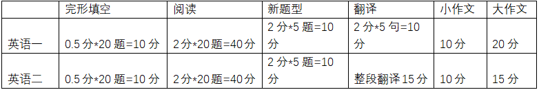 如图可见,就分值而言,阅读和作文是最值得下功夫的。就历年分值而言平均分最低的是翻译,翻译虽看似简单,但若想得高分却难新题型是各类题型中比较简单的,因此要保证不失分。完形填空是性价比最低的,原因在于,数量多每题分值小,耗时较长。因此,在整张卷子中最应该抓住的是阅读、新题型和作文,在保证这3类题型拿到自己所能得到的最高分的前提下,再保证完型和翻译得到一个不错的分数。