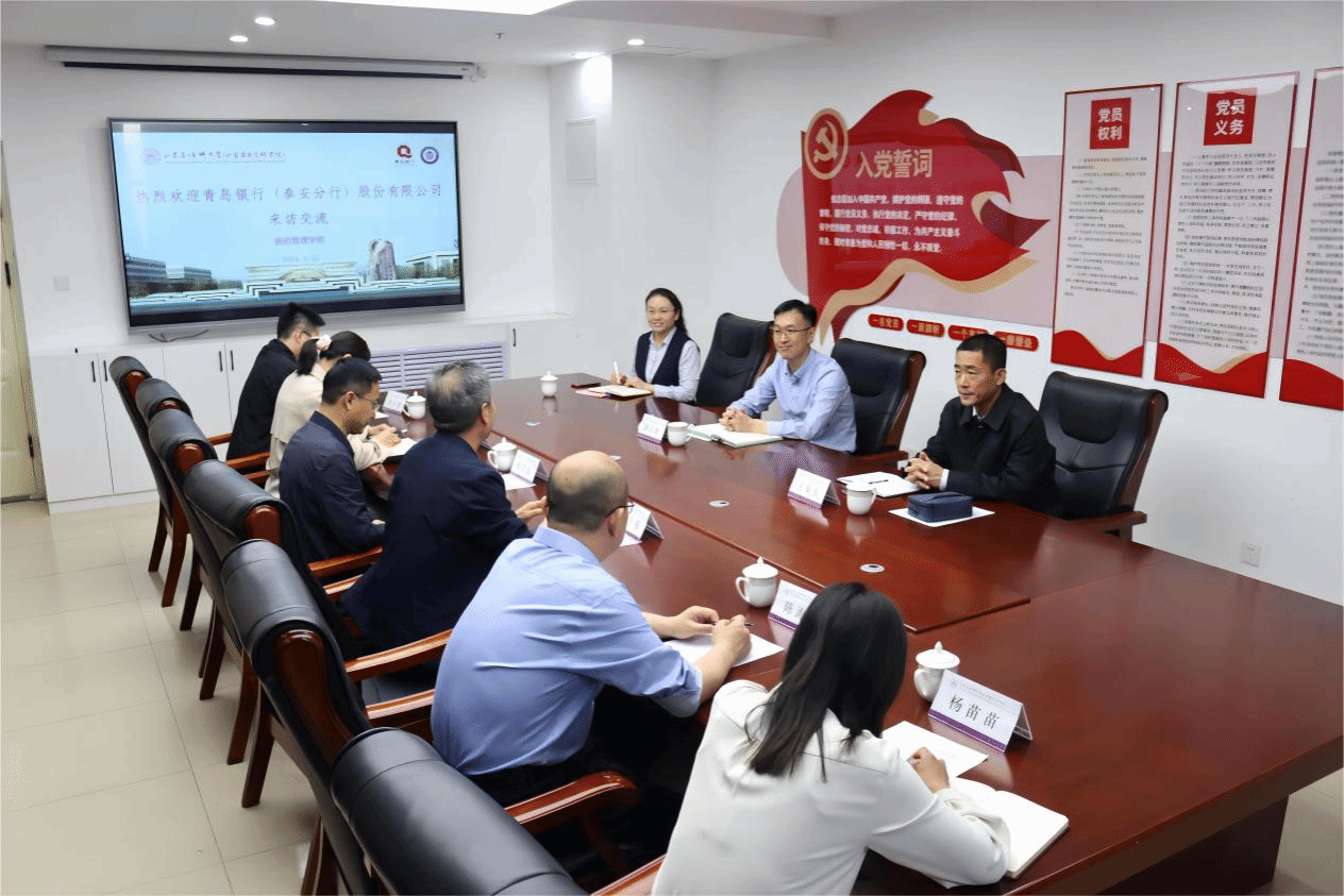 4月25日,青岛银行泰安分行行长谭长臻一行到公司访问交流。公司经理陈士福、党委书记杜江山出席会议并热情接待,副经理陈海玉主持会议。