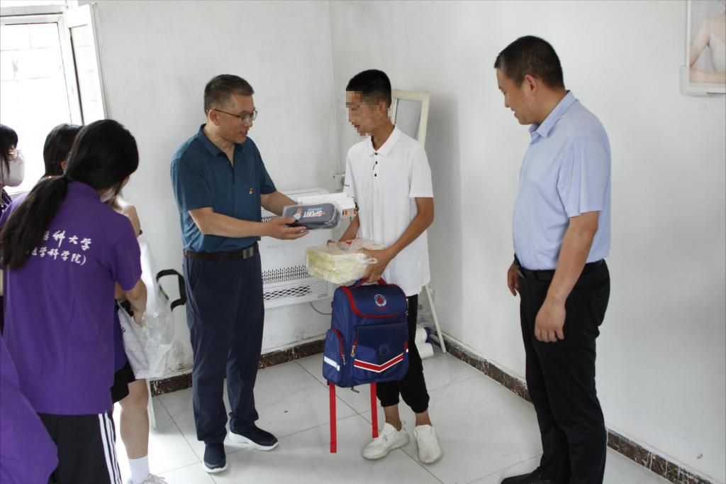 座谈会后,任纬兵一行为受助儿童送去慰问品。服务队队员与受捐助对象进行了有益的交流,在其学习方面提供有效学习方法和建议。