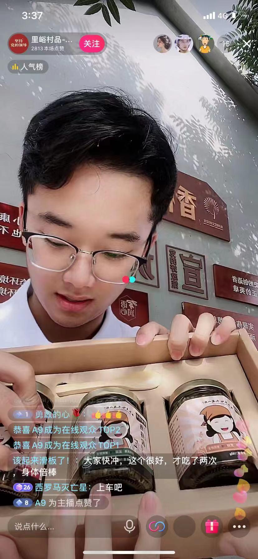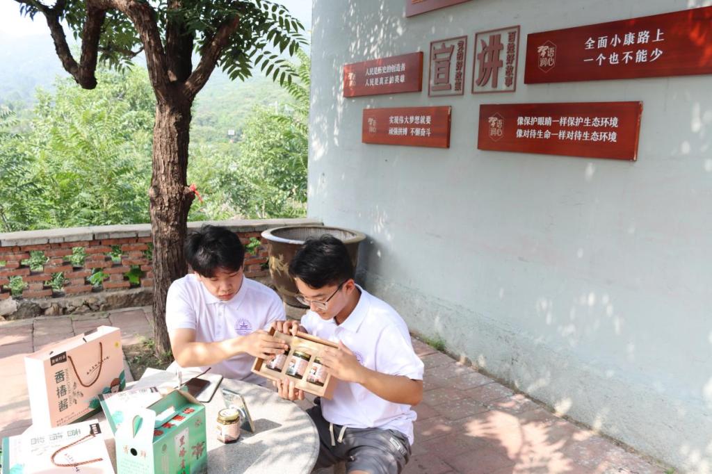 现场演示抖音直播销售产品。实践队成员任朝进、董致颉、陈坤等同学在里峪村“香椿树下”宣讲台对农产品进行了现场直播演示。通过抖音直播,让村民更加直观、真实的感受到网络电商销售。以直播形式,推动农产品的推广,以微薄之力,促进新农村的发展,助力巩固拓展脱贫攻坚成果同乡村振兴有效衔接,讲好乡村振兴故事。