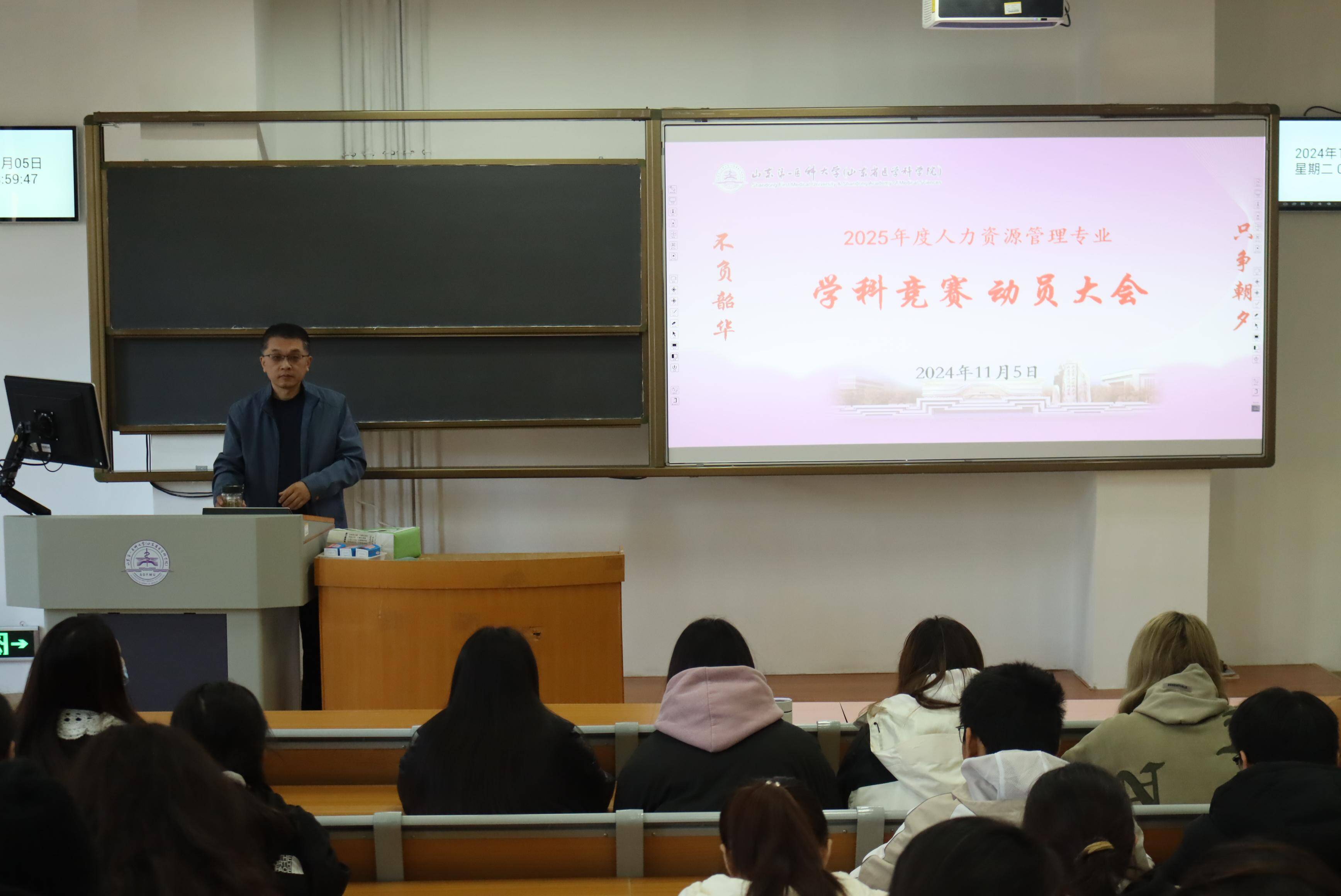 为帮助同学们了解学科竞赛的相关内容,动员同学们积极参与学科竞赛,11月5日上午,三亿体育在教学南楼C2010教室召开了人力资源管理学科竞赛动员大会。本次动员大会由人力资源管理系主任于忠军主讲,辅导员刘晓丹及23级人力资源管理专业员工参会。