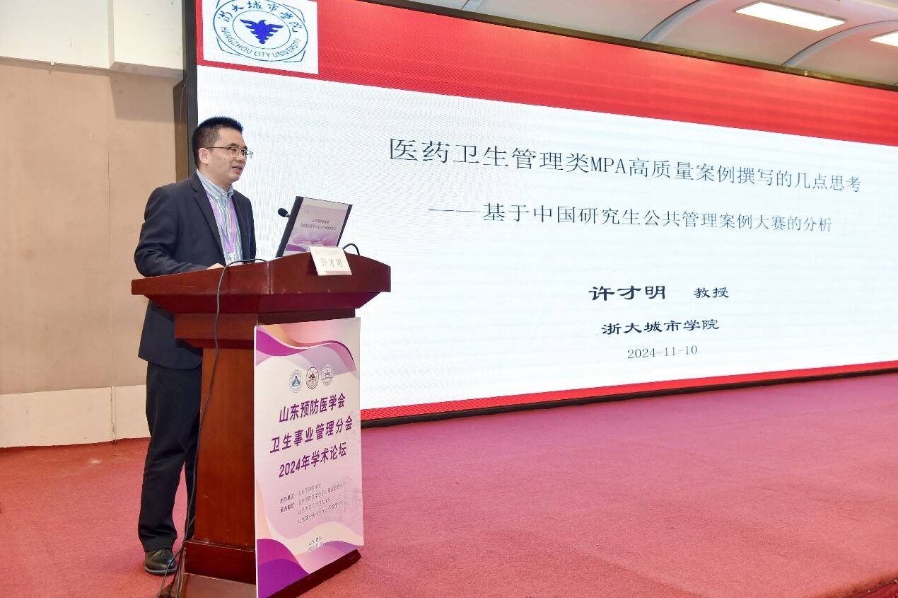 在专题报告环节,华中科技大学冯占春教授带来了关于“从三医联动到三医协同的转型思考”,江苏大学周绿林教授则就“中国式卫生健康现代化的核心理念与实现策略”进行了深入探讨,省卫健委王萱处长详细介绍了山东省的医养健康产业政策,浙大城市公司许才明教授则从公共管理案例大赛的视角出发,对医药卫生管理类MPA高质量案例的撰写策略进行了分享,公司王燕副教授聚焦新时代卫生管理人才的培养问题分享了科教融合与医教协同的成效与经验。