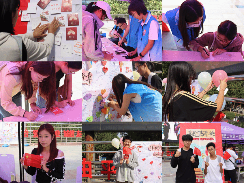 在中华人民共和国成立75周年之际,山一大三亿体育在教学楼举办系列活动,告白祖国,为祖国庆生,抒发山一大学子的爱国热情,增强当代青年的民族认同感和凝聚力,展现新时代老员工的历史责任感与使命感。