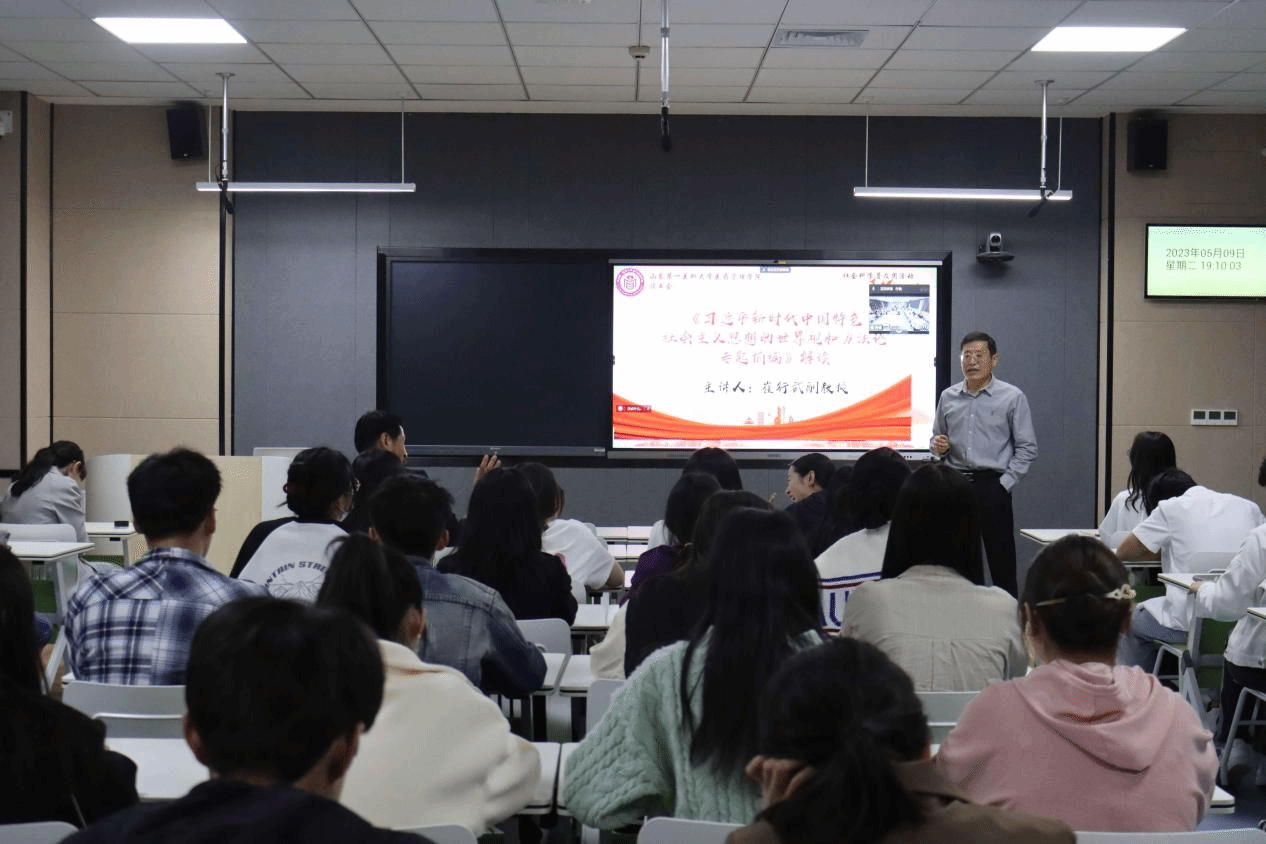 会上,崔行武老师从马克思主义中国化、如何传承发扬中国特色社会主义以及新时代中国特色社会主义对我们的指导意义三个方面对书本内容展开解读,他强调,我们要努力把握好习近平新时代中国特色社会主义思想的世界观、方法论并运用贯彻好其中的立场、观点、方法,进而提高自身综合素质,努力实现中华民族伟大复兴。崔行武总结道,马克思主义是我们党的灵魂和旗帜,我们要不忘初心,坚定理想信念,坚持马克思主义不动摇。他希望同学们能够厚植爱国主义情怀,把爱国情、强国志、报国行自觉融入实现伟大梦想的奋斗之中,努力成为一名优秀的社会主义建设者和接班人。崔行武老师的解读深入浅出、旁征博引,既有理论的深度和高度,又有实践的具体指导意义,同学们深受启发,更加坚定了心中的马克思主义信仰。