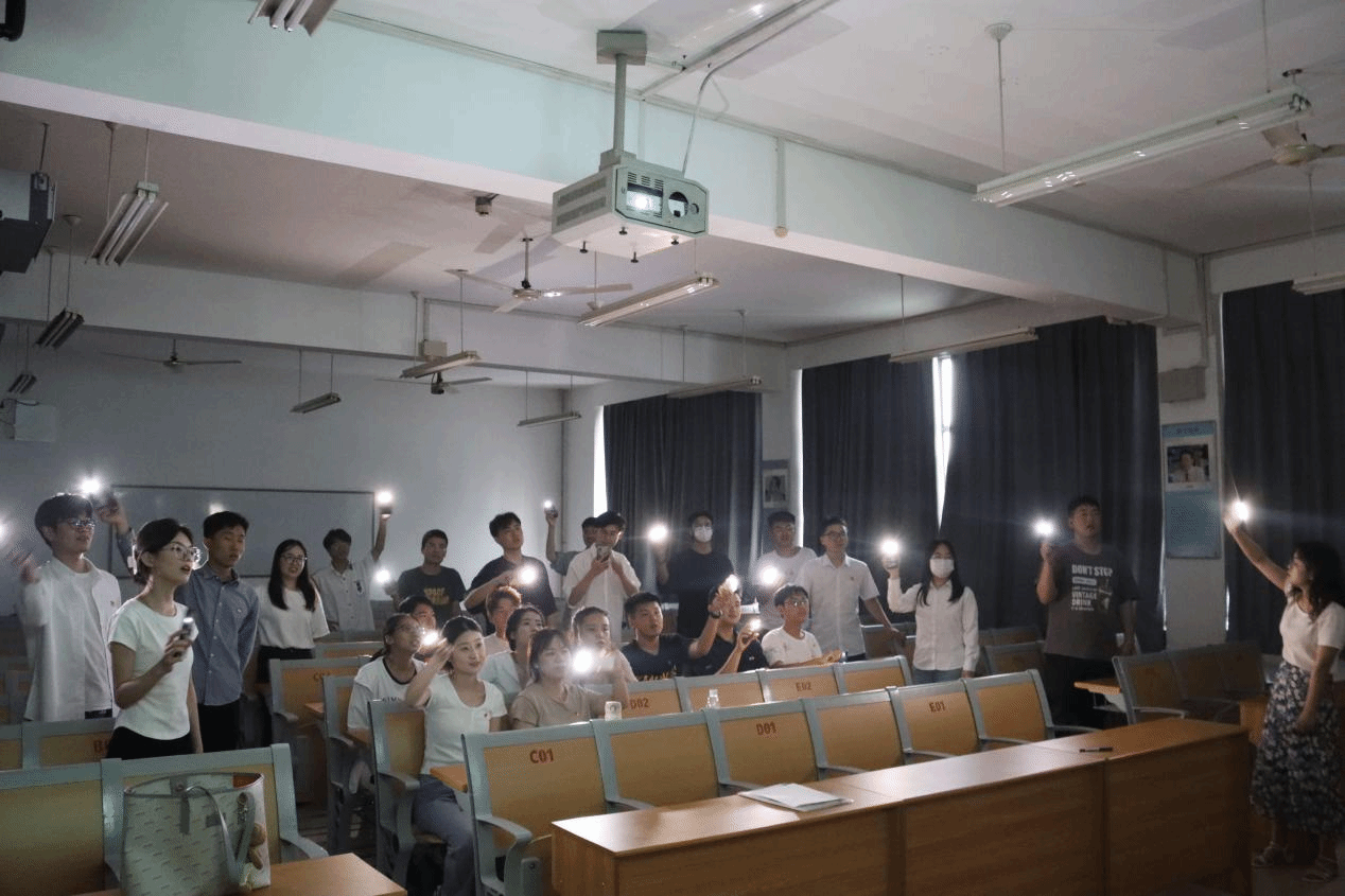 随后,两名幸运同学通过扔纸飞机的方式为毕业生们送上祝福,用温馨的话语祝愿大家扬帆远航,前程似锦。全体毕业生党员共同观看了“送给毕业的你:凤凰花开的路口”视频,在点点的荧光中合唱了最后一首歌,优美的歌声唱出了对未来的期许。合唱结束后,在校的党员作为学弟学妹们的代表,为毕业生党员送上了衷心的祝福。