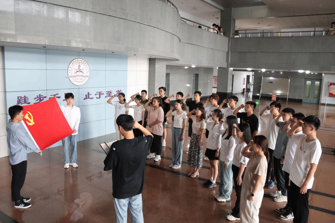 活动最后,全体党员于教学南楼A座大厅重温入党誓词,所有党员面向党旗,举起右手,再次向党庄重承诺,铿锵有力的誓词激励着毕业生们更进一步坚定理想信念,保持奋斗精神;不忘初心,逐梦芳华。